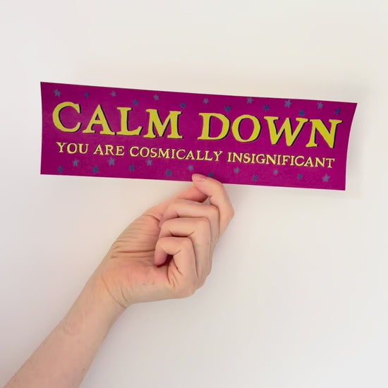 Calm down, you are cosmically insignificant. Perfect for your car to send a message to the guy behind you to chill out maaaan.