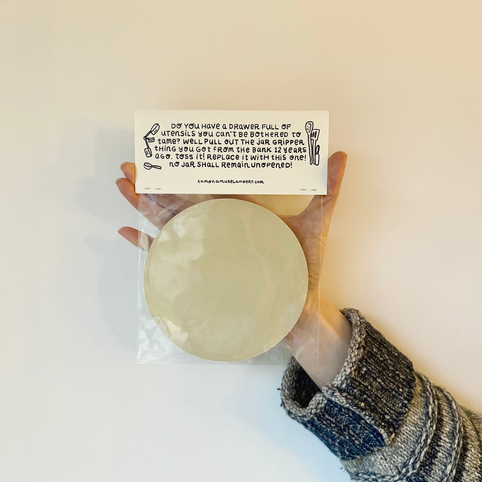 - Textured rubber disc for gripping and opening jar lids